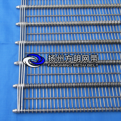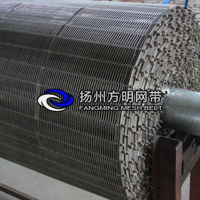 線圈網帶:線圈式網帶也叫(鏈鉤型金屬輸送帶)其實是鏈條輸送帶的一種,是我公司自行開發(fā)的一種新穎產品,但是使用性能卻遠遠超過普通的輸送帶結構,因為它屬于單層輸送帶,比老式的中間加裝的雙層的螺旋型金屬輸送帶,更有良好的透氣性,穿透性,便于清洗、網孔不易堵塞、網孔的大小可以根據客戶的要求任意調節(jié),而且因為是鉤式卷制,在拉力和抗拉強度上更勝一籌。